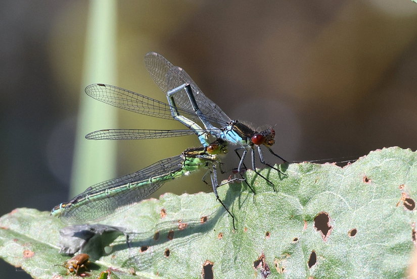 More often than not, if I find a Red-eyed Damselfly it is on a lily pad or other vegetation, floating on the water. Finding one on waterside foliage is a real bonus.